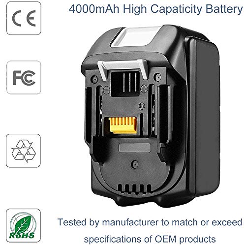 Título: 2X Dosctt 18V 4,0Ah Li-Ion Batería de Repuesto para Makita BL1840 BL1850 BL1830 BL1815 194205-3 196399-0 LXT-400